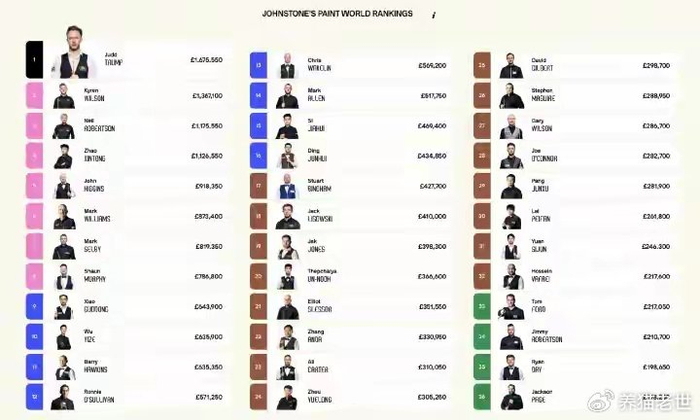 就在世锦赛开打前,赵心童刚在巡回锦标赛决赛中以10-3碾压特鲁姆普夺冠,这场胜利不仅让他单赛季冠军数增加到四个,更关键的是,他的世界排名悄然升至第四,与榜首特鲁姆普的积分差距缩小到约55万英镑。这意味着什么?意味着一个疯狂的“理论可能”正在浮现:如果赵心童成功卫冕世锦赛,而特鲁姆普意外首轮出局,那么中国斯诺克将历史性迎来首位世界第一!